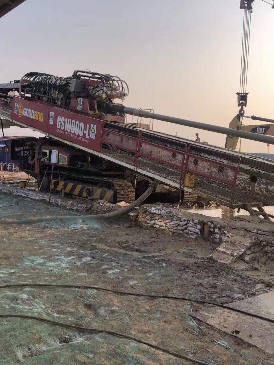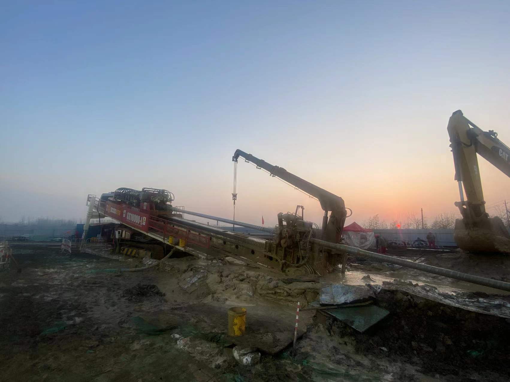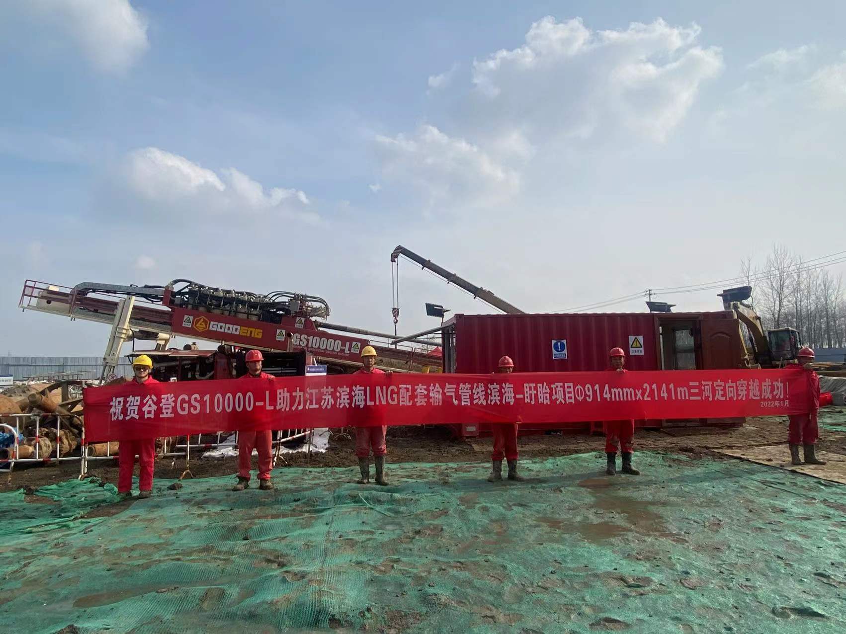 2022年1月6日中午12点,“谷登机械”GS10000-L大型钻机再创佳绩——助力中石油管道四公司江苏滨海LNG配套配套输气管线Φ914mm×2141m三河定向钻穿越工程回拖顺利完成,历时72小时,该工程管径大、钻孔深、地质复杂、距离长、是施工难度非常大的一条穿越工程。